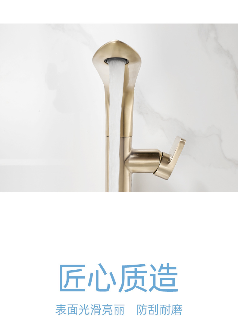 Brushed Gold Light Luxury Washbasin Faucet Toilet Bathroom Counter Basin Rotating Hot And Cold Faucet Brass Gold